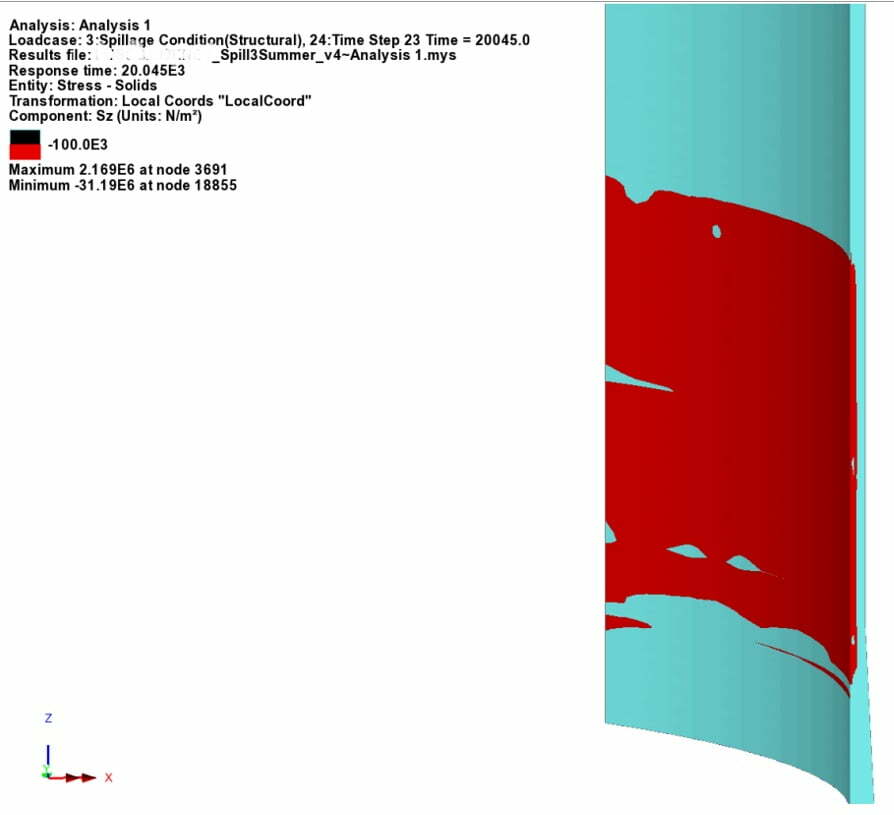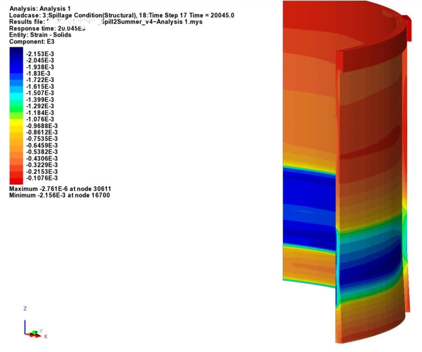 열해석에 따른 온도분포와 ULS 하중조합에 따른 구조하중들을 대상으로 구조해석 수행